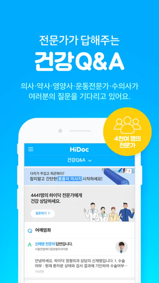 의사, 약사, 영양사, 운동전문가 등 4천여명의 하이닥 전문가가 건강 궁금증을 해결해 드립니다