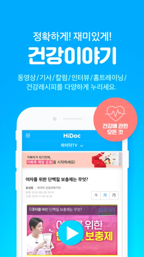 전문가 칼럼 및 하이닥 전문의학기자가 준비한 뉴스를 동영상, 카드뉴스와 같이