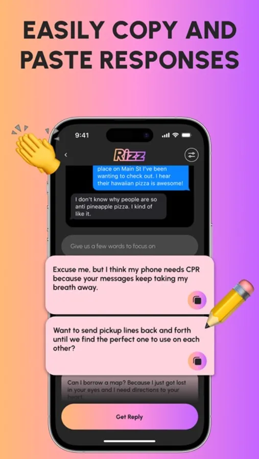 - Our artificial intelligence creates the smoothest responses and pickup lines for your conversation partner's messages.