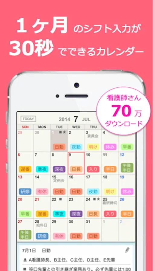 ※看護師専用のスマホアプリカレンダーとして、70万人のナースが活用しています。