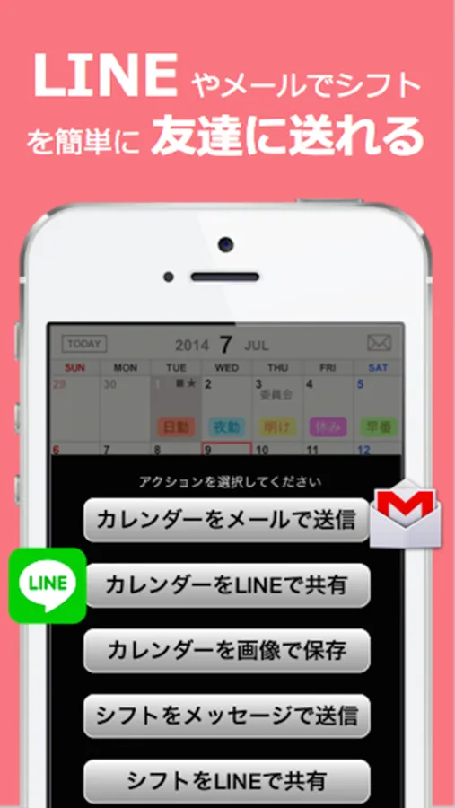 ● lineやメールで勤務表を友人に共有できる!