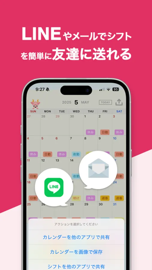 LINEやメールでカレンダーを送るだけで、家族やパートナーとも予定をすぐに共有可能。