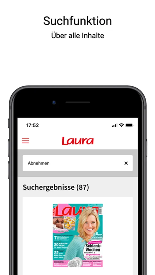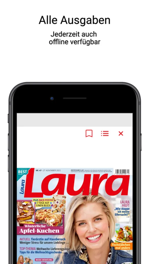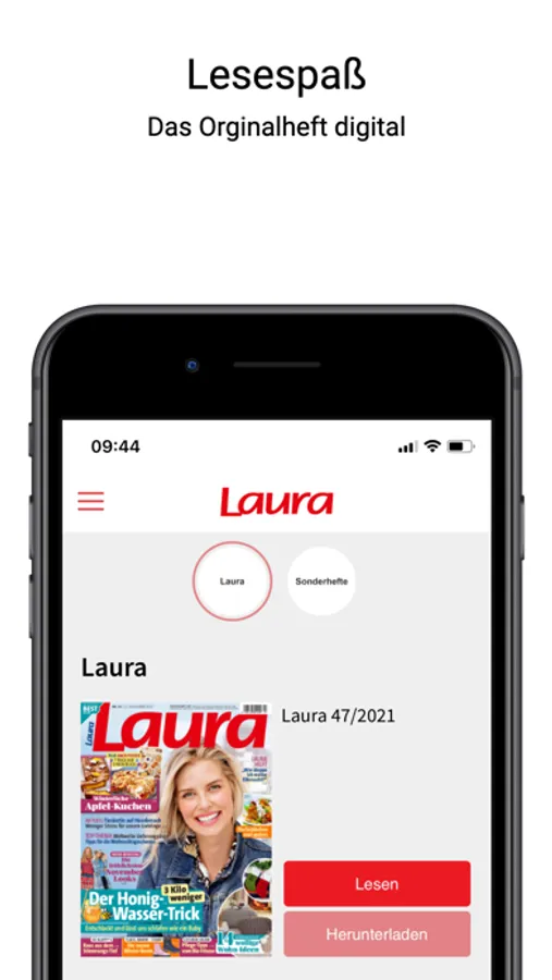 Mit einem digitalem Abo der Laura halten Sie auf Ihrem Tablet oder Smartphone besonders viele Vorteile in den Händen: etwa jede Woche mit „Leichtes Leben“ einen Extra-Ratgeber für den Alltag. Mit den vielen Zusatzfunktionen finden Sie in jeder Ausgabe schnell die leckersten Gerichte für die ganze Familie – die Rezepte sind mit dem Handy auch unterwegs zum Einkaufen einsehbar und schnell zubereitet. Laura zeigt Ihnen zudem, wie das Abnehmen im Alltag funktionieren kann. Die Laura ist der Ratgeber für die moderne Frau. Sie bietet Tipps zu Mode und Beauty.