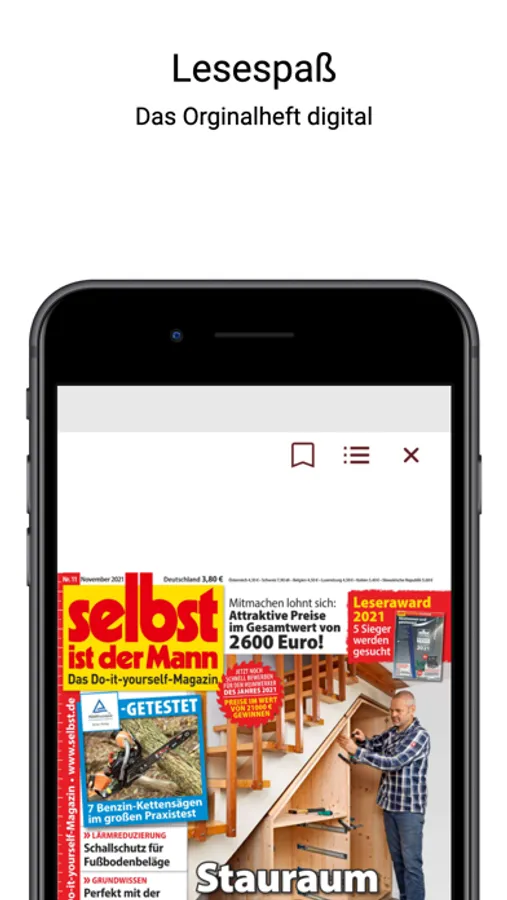 Das selbst ist der Mann ePaper erscheint monatlich und bietet ausführliche Tipps über Techniken, Werkzeuge und Materialien für Heimwerker – direkt auf Ihrem Tablet oder Smartphone. Sehen, verstehen, nachvollziehen - das schafft beim Bauen Erfolgserlebnisse. Hier hilft selbst ist der Mann.