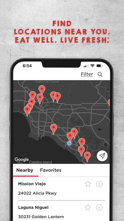 With the Baja Fresh app, you can search store locations nationwide and order ahead at participating locations. Just search for your favorite Baja Fresh store and place your order for your uniquely crafted favorites! Pay ahead on the app and have your food ready in store upon arrival. The fastest way to eat well and live fresh!