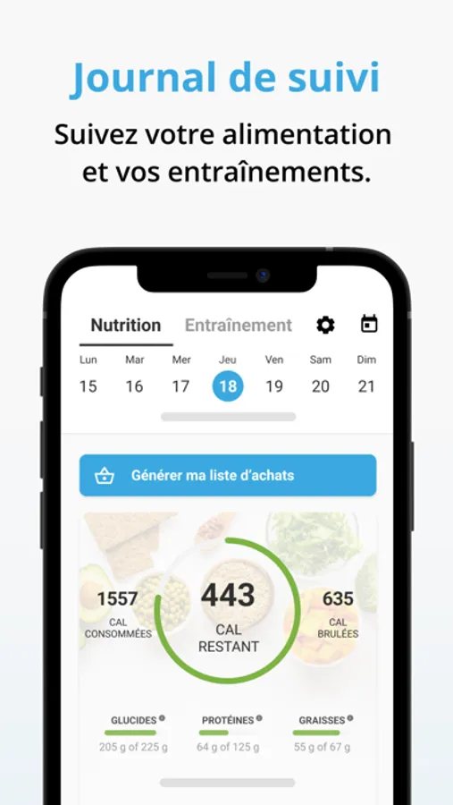 • Suivi de progrès avec carnet d’entrainement
