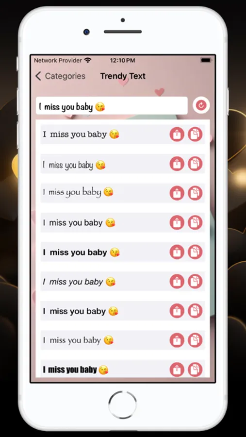 * Repeat Text: Say "I love you" or "I miss you" 1,000 times with just a tap!