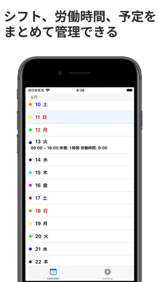 シフトタイム/縦型カレンダーであなたの時間を一括管理