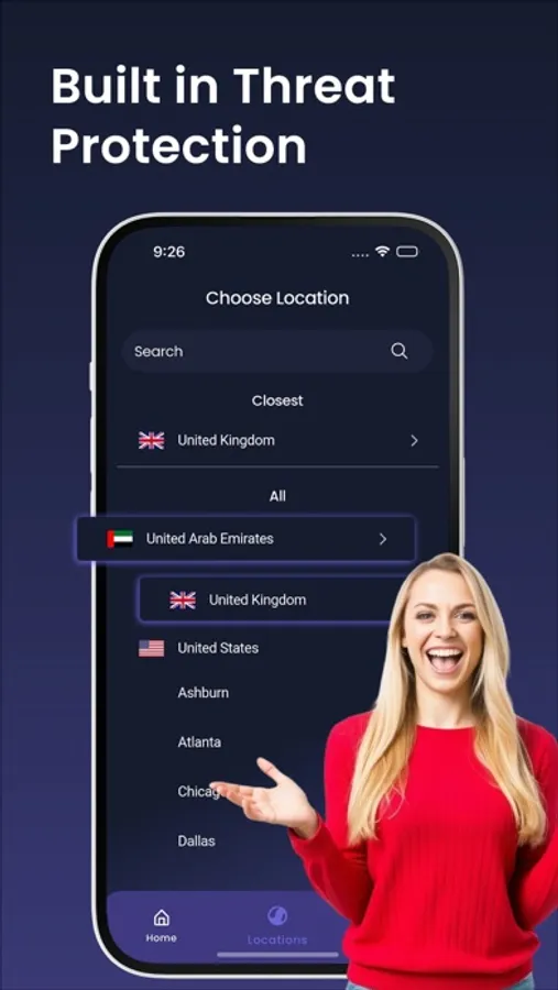 Included in our VPN is our advanced threat protection system that protects you by blocking access to known trackers and malware. By identifying and barring malicious websites, we help prevent harmful content from reaching your device, protecting your data and privacy.