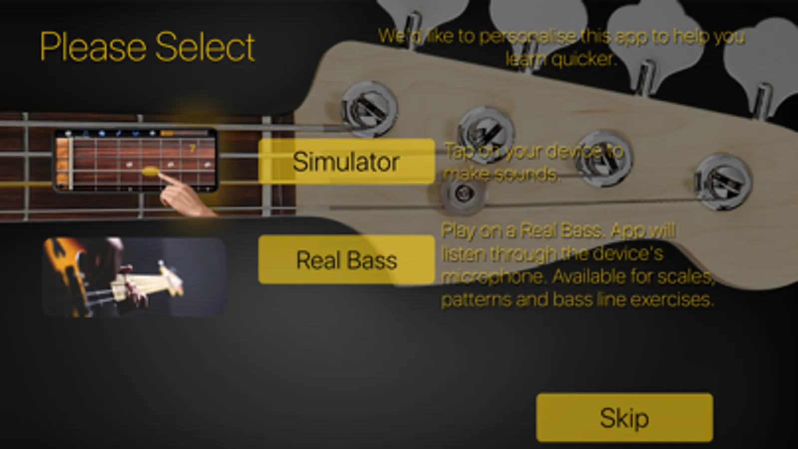 • Highly configurable. Resizeable fretboard suitable for all devices and tablets. Choose between acoustic, fingered or slap bass.
