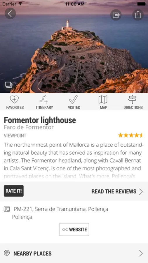 The Mallorca runaway guide includes an extensive directory of monuments, museums, beaches, bars, restaurants, dance clubs, and many more—each record accompanied by full descriptions of the places, images, and even user comments that will help you while determining your itinerary to visit Mallorca. As a user of this Mallorca app, you can rate the points of interest and leave comments so that others can read your reviews.
