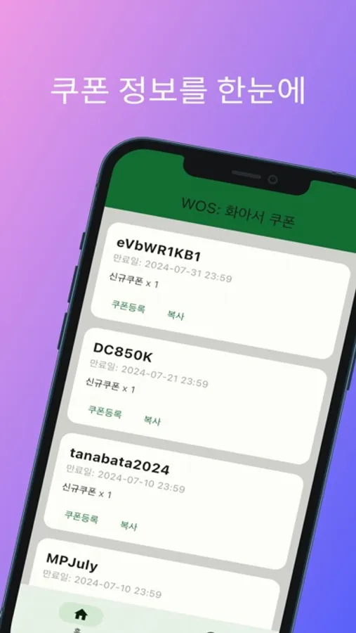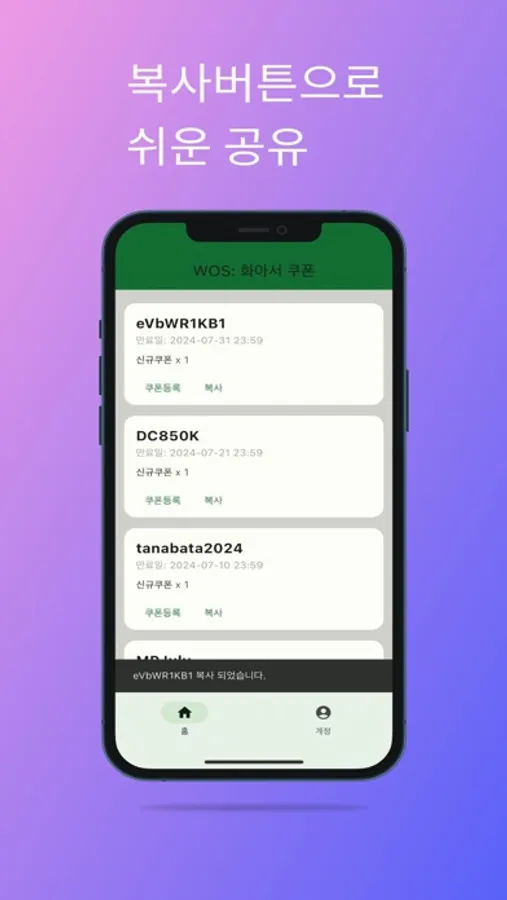 복사버튼으로 손쉽게 쿠폰을 복사하여 공유할 수 있습니다.