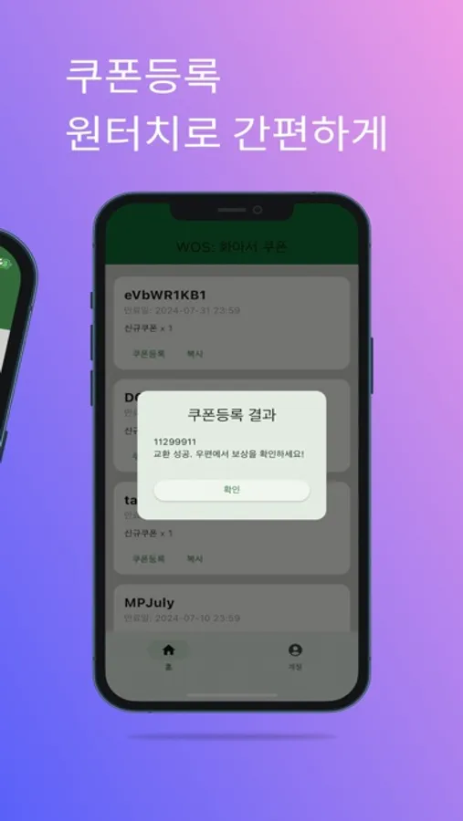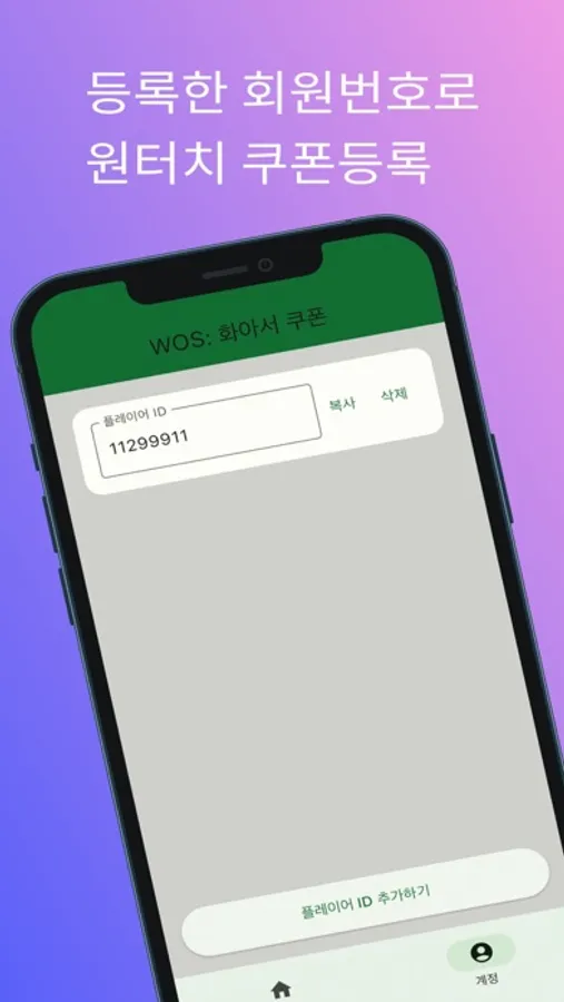 여러개의 회원번호를 등록해 두면 터치 한번에 모든 회원번호의 해당 쿠폰이 등록됩니다.