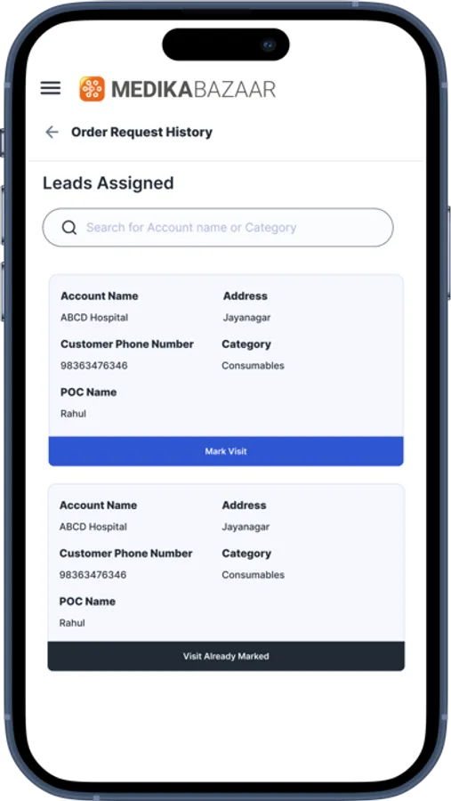 Order Requests: Sales team can raise and track order requests on the go.