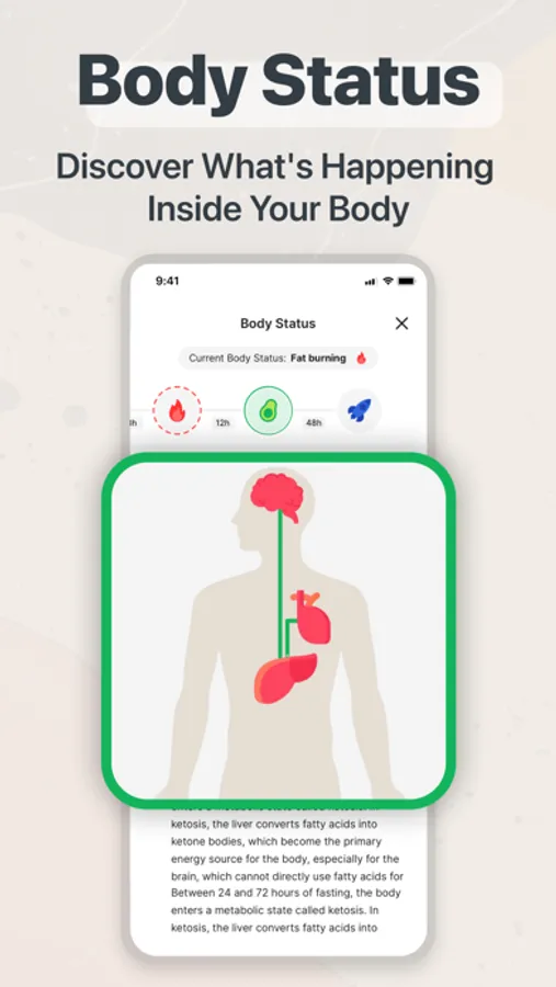 Stay informed about your body's status during fasts with our advanced tracking feature. Monitor key indicators to understand your body's processes, helping you maximize the benefits of your fasting routine and keeping you motivated throughout your journey.