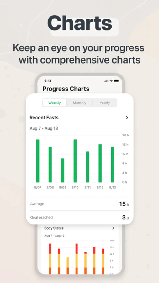 Watch your efforts pay off with our intuitive graphing tools. Track your progress over time with easy-to-read charts and graphs that showcase your improvements and fasting achievements.