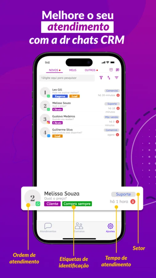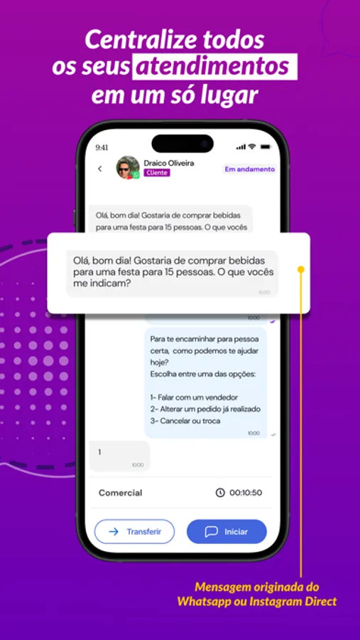Crie uma central de atendimento com uma plataforma fácil de usar e que funciona de verdade! Concentre todas as conversas de WhatsApp e Direct em um único lugar e gerencie os atendimentos do seu time.