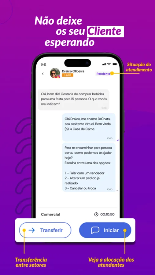 - Apenas um número de WhatsApp para vários atendentes e setores