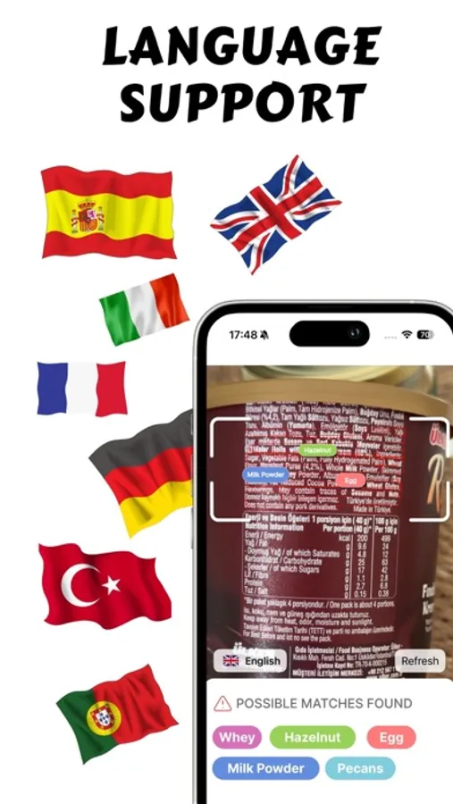 6. Multi-Language Support: The app supports ingredient recognition in multiple languages, making it useful for international travelers or people who shop for products with labels in different languages. This feature is particularly valuable for those who want to ensure food safety while abroad.