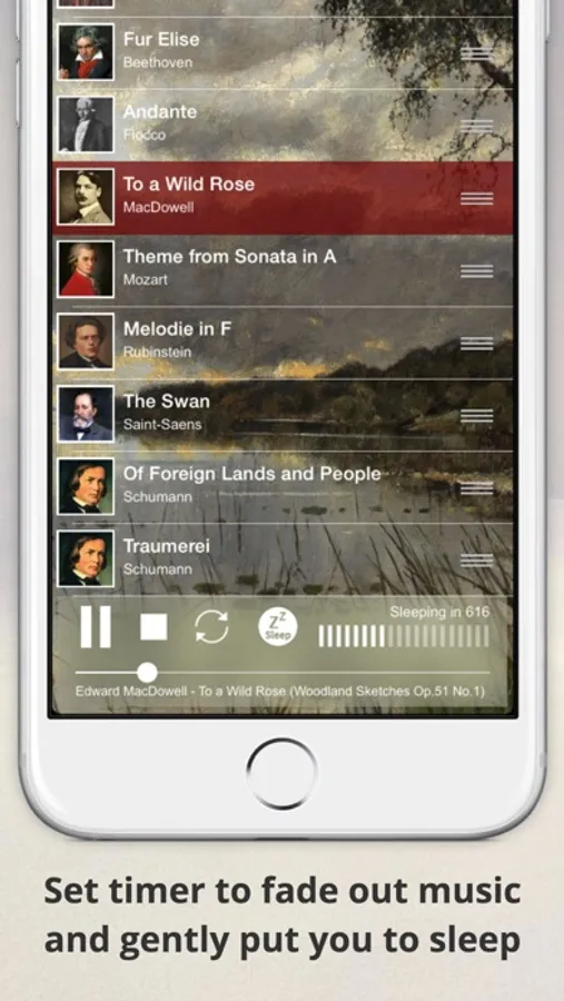 • Sleep timer: Sleep mode fades out music and gently puts you to sleep