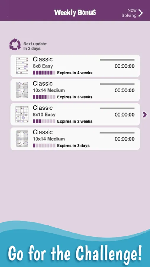For more fun, Conceptis Tic-Tac-Logic includes a Weekly Bonus section providing an extra free puzzle each week.