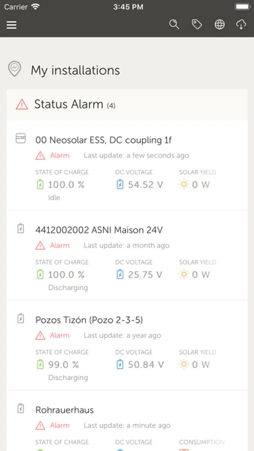 Monitor and manage your Victron Energy system. Login with your VRM account, and see all your sites in a list. Tap a site to see its