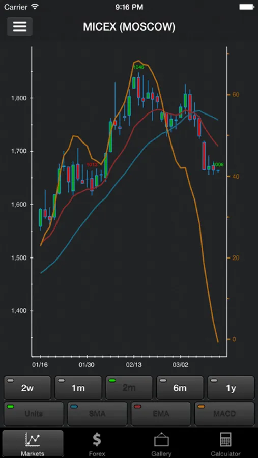 Application contains a simple currency calculator allowing to use market open, market close, or user defined exchange rates for currency conversion.