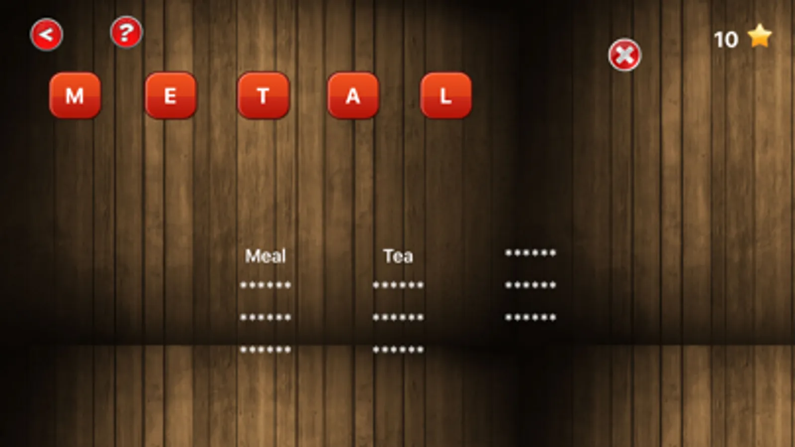 The game consists of ten levels. Each level has the certain word and it is necessary to make anagrams out of every one.