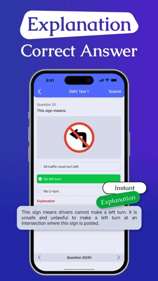 Disclaimer: The application is designed to provide training courses for those learners who prepare for their driver permit tests. This app is not affiliated with and does not represent the DMV or any Department of Motor Vehicles, or any federal, state, county, or city government, or any department, bureau, division, or agency of any governmental body in the United States and it does not replace official state-specific DMV applications.