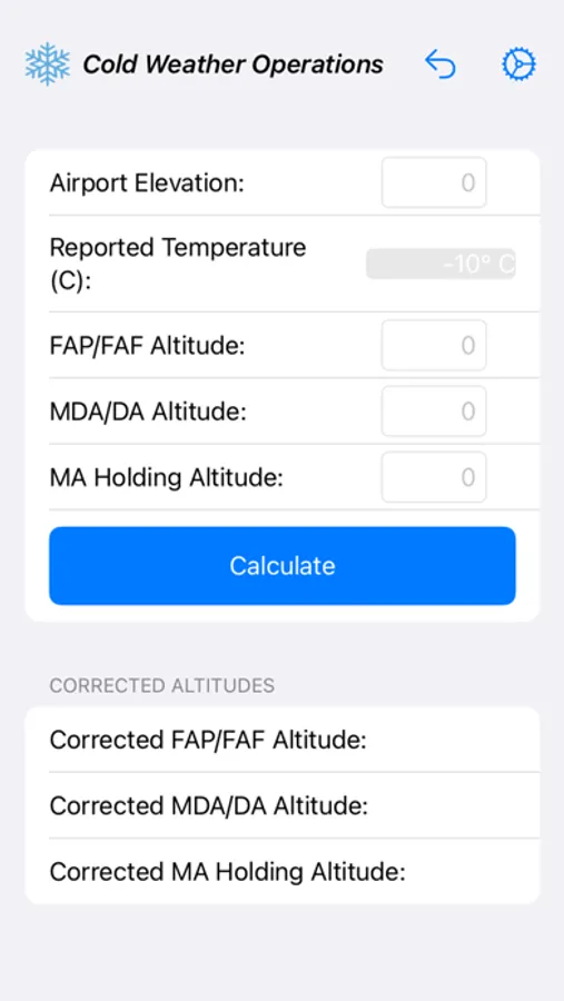 Making temperature corrections for instrument approaches has always been a headache for pilots, especially under stressful conditions. This app makes it all easier! Enter the required information, press Calculate and voila!