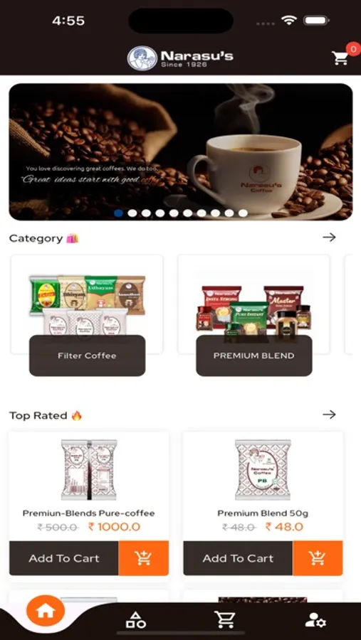 Purchase Online: Buy your favorite Narasus Coffee products directly through our app.