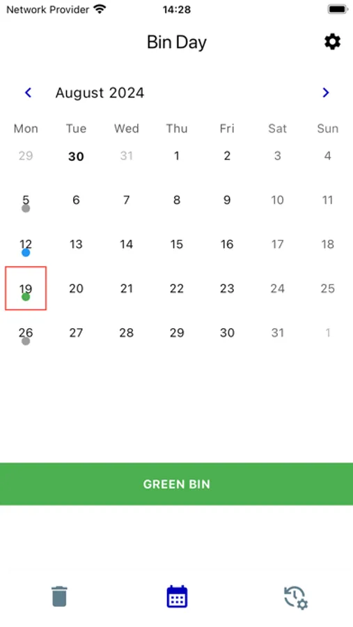 Create a bin day schedule, then see at a glance when your next bin(s) are due to be collected.