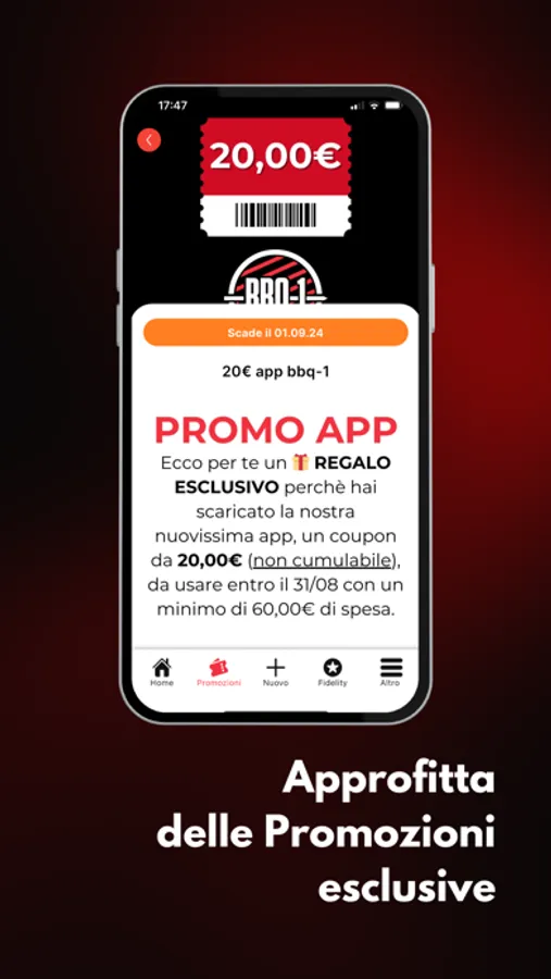 La APP ufficiale di BBQ-1! Potrai prenotare un tavolo, un asporto o una consegna a domicilio! Avrai accesso a promozioni esclusive ai possessori dell'APP e potrai anche visionare il nostro menù!