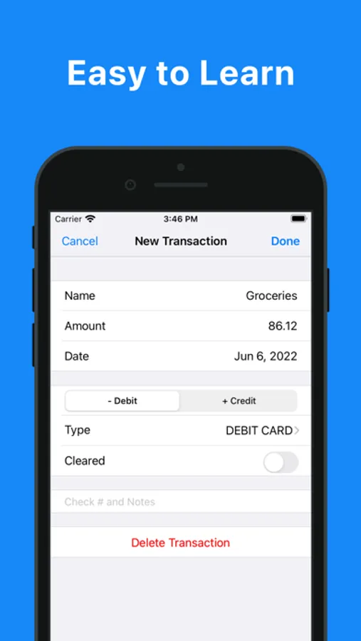 Don’t let overdraft fees or pending transactions catch you by surprise - always know exactly what your account balance is with Balance My Checkbook! All you have to do is enter your expenses and income and let the app do the rest.