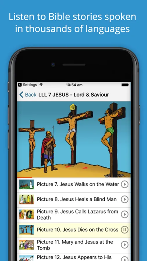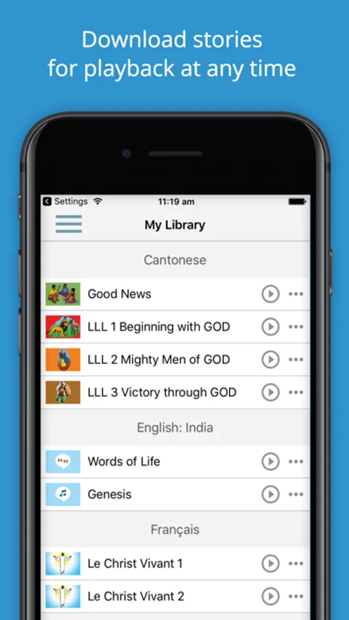 Gospel messages can be downloaded for future playback offline. Many recordings are audio-visual displaying high quality colorful illustrations.