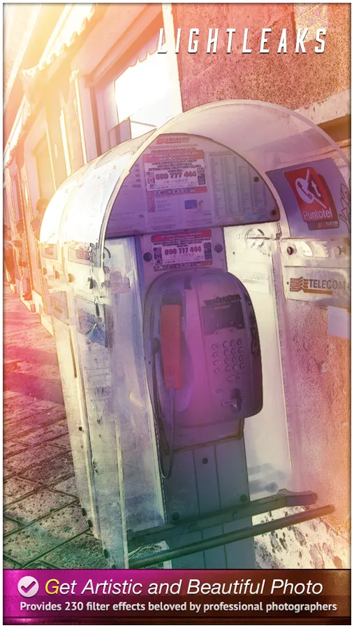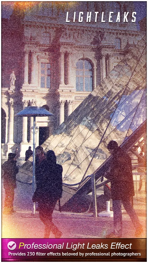 Light Leaks provides 230 filter effects beloved by professional photographers, Light Leaks themes vary from the feel of film camera to the unique sets of classy moods or fun creativity.