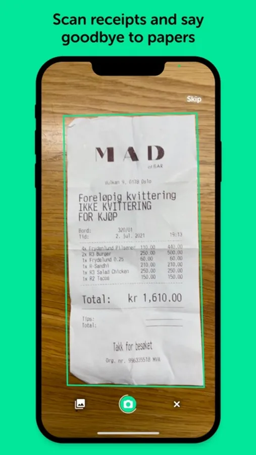 • Automatically extract data from all kinds of receipts – both digital and paper