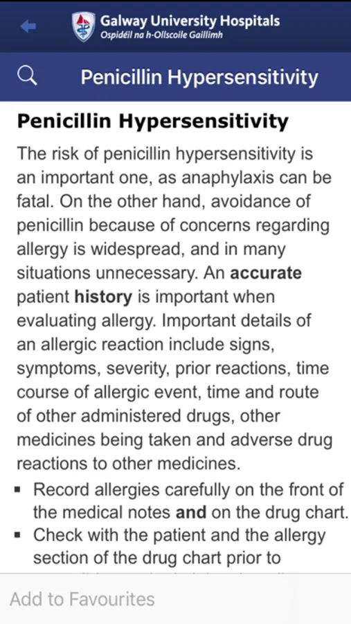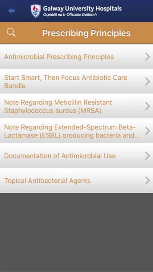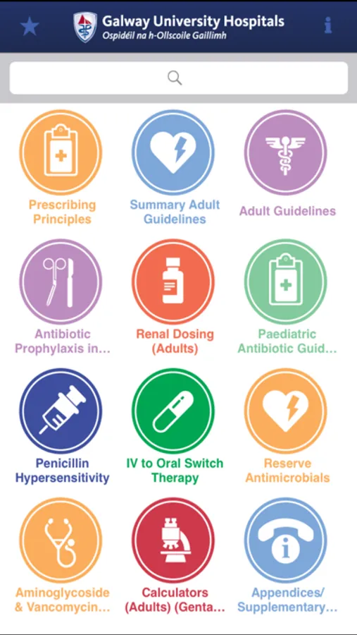 Galway University Hospitals (GUH) Antimicrobial Prescribing Guidelines in mobile app format for smartphone devices. Practical evidence-based empiric treatment recommendations for adult and paediatric infections by body system with recommended doses and duration, including options for penicillin allergy, dosing calculators for gentamicin and vancomycin, and much more.