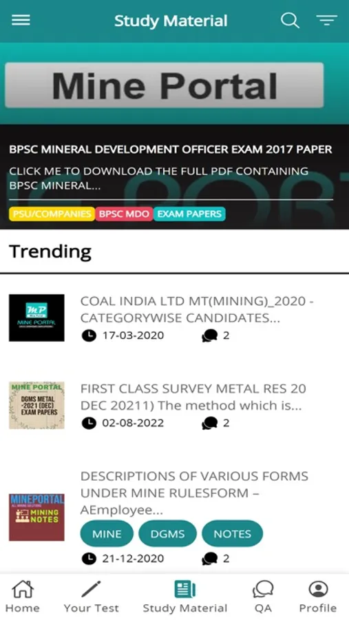 "Mine Portal" is a comprehensive exam preparation app for mining professionals and students. It provides online test series preparation for DGMS Coal/Metal First/Second Class, GATE Mining, CIL MT, and other PSU exams. Users can access video lectures, study materials, previous college exam papers, notes, and more to enhance their knowledge and exam readiness.