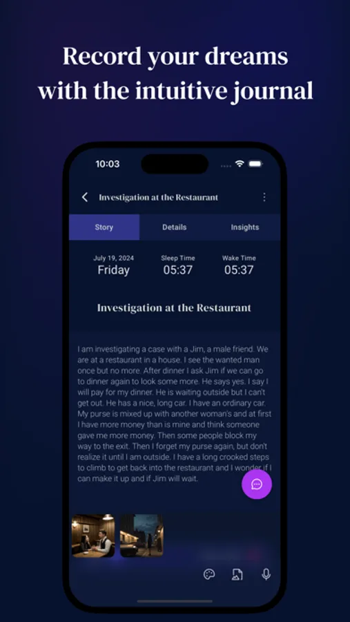 DreamMuse is designed to help you verbalize and organize your inner narratives. Engage in conversations to gain deeper insights into your thoughts, emotions, and desires.