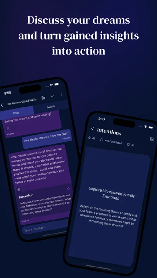 Take control of your dreams and turn them into real-life actions with our intention mechanism. Review and note potential actions you can take to bring positive change into your life.