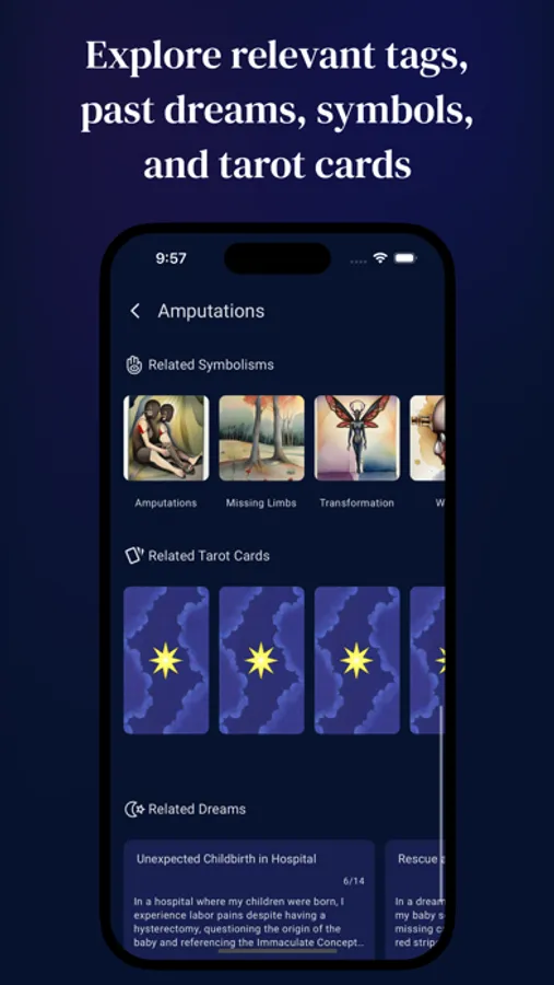 Dreams, tags, conversations, symbolisms, tarot cards... they are all interconnected and you have easy access to relevant entries.