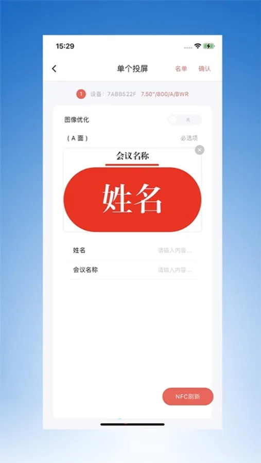 低功耗蓝牙(BLE)桌牌显示更新,下发会议信息、下发图像信息;支持创建各种专业模板,支持批量进行设备下发操作。