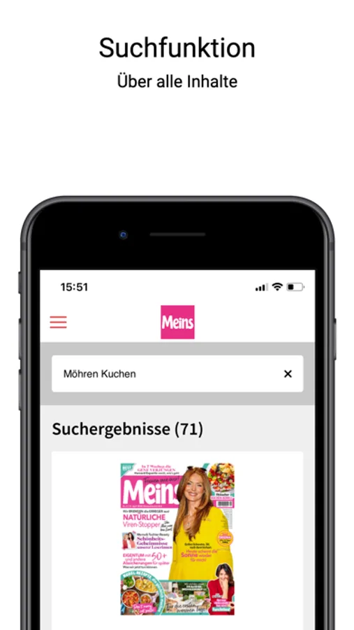 Meins ist der digitale Lesespaß für moderne Frauen, die aktiv im Leben stehen und dem Altern ohne Panik entgegensehen. Meins im Digital-Abo bietet Ihnen viele Funktionen, die das Lesen noch komfortabler machen: zum Beispiel Suchen, Zoomen, Blättern. So erfahren Sie wie es anderen Frauen zwischen 50 und 70 wirklich geht. Außerdem finden Sie in Meins regelmäßig einen großen Service und Ratgeber-Teil, echte Storys über Prominente und wahre Geschichten aus dem realen Leben.
