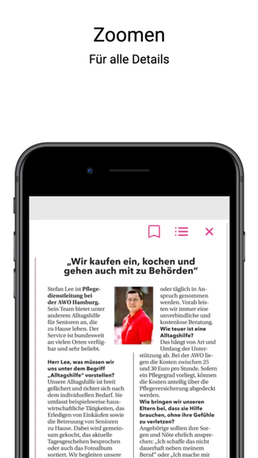 • Lesemodus mit Zoom-in und -out - Auch die letzten Details sehen