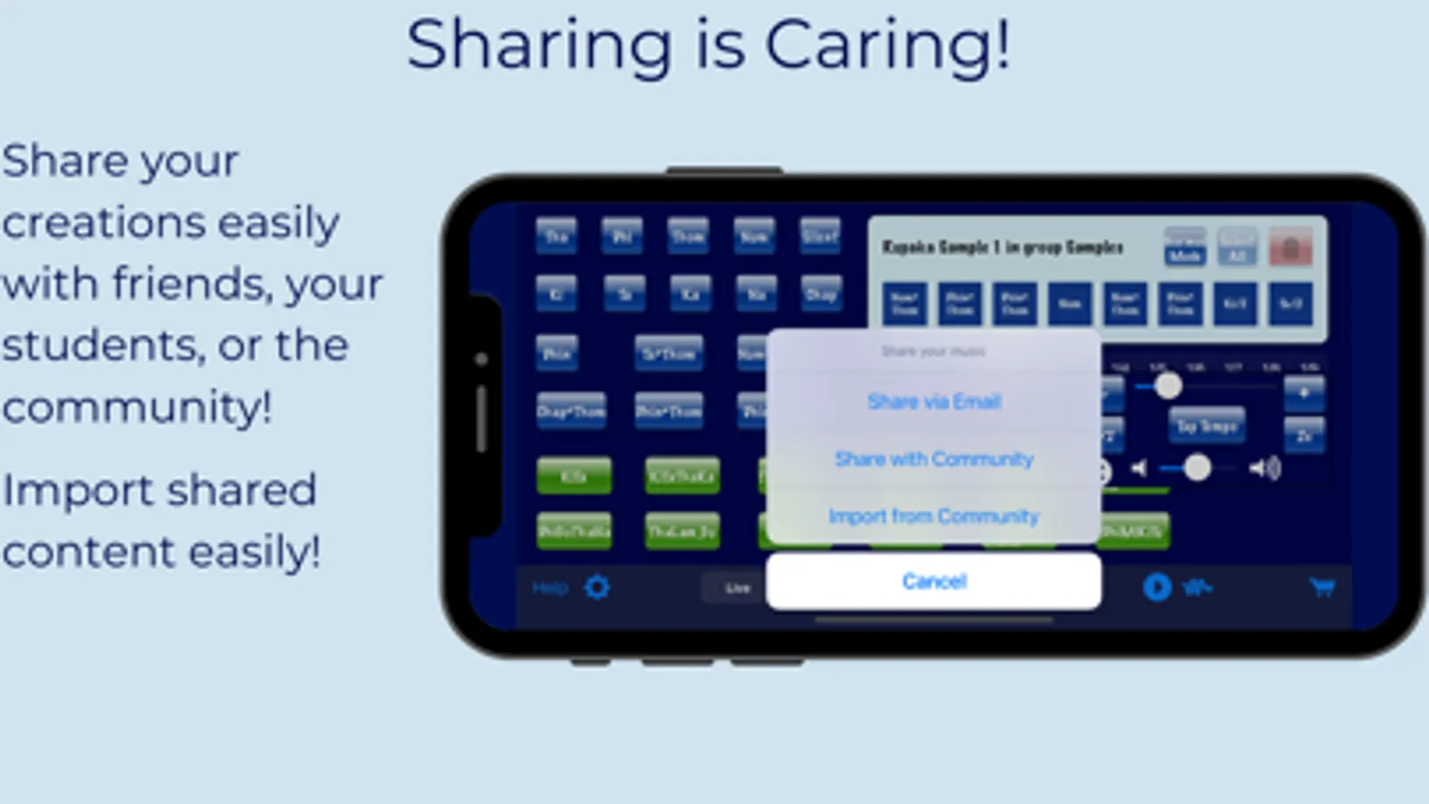 Easily share your creations with your friends and with the "My TalaVadyam" community and play sequences from creations that have been shared by your friends and other users!