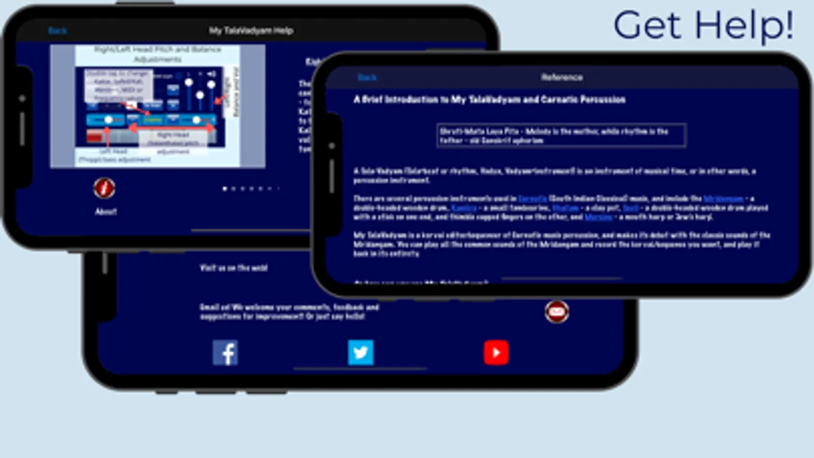 * Export your creations and email them to your friends or share with the "My TalaVadyam" community page from within your app