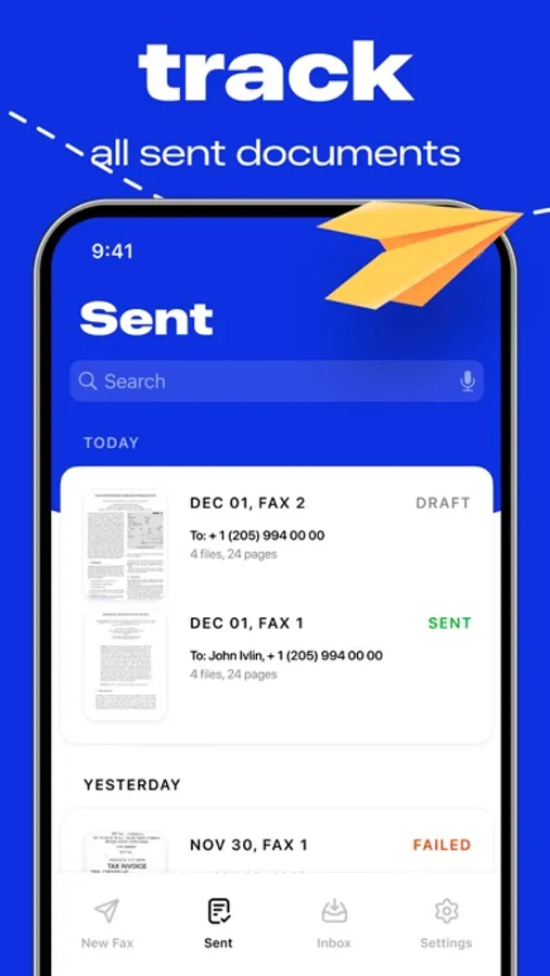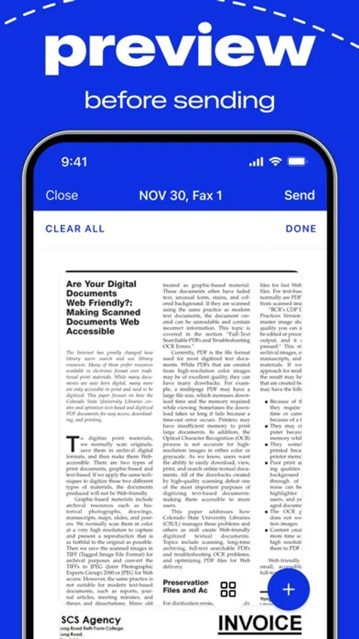 Send and receive faxes seamlessly from your iPhone or iPad. No fax machine needed! Easily fax any document, anytime, anywhere.