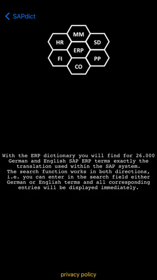 With the ERP dictionary you will find for 26.000 German and English SAP ERP terms exactly the translation used within the SAP system.