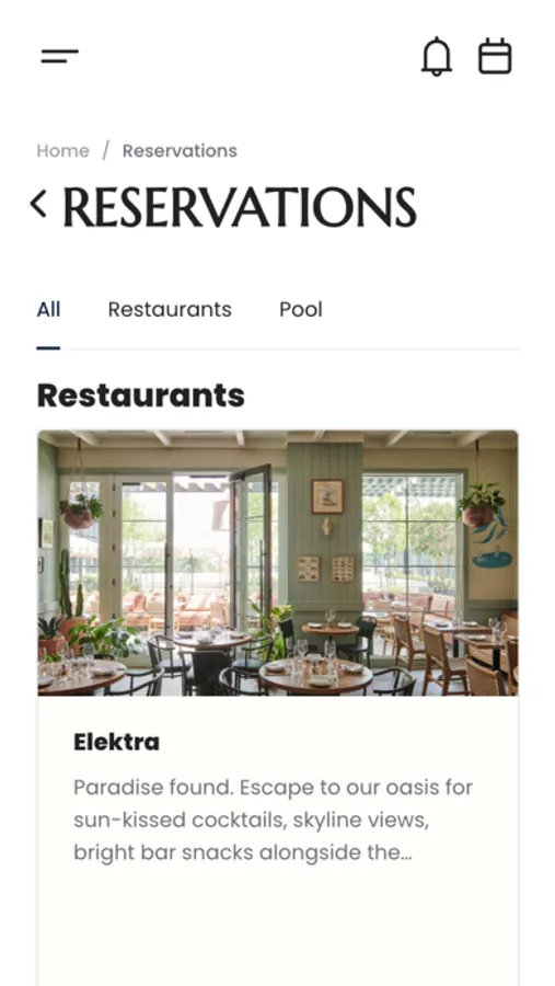 A private mobile app for members of FORTH Club to book restaurant reservations, hotel accommodations, and spa services, RSVP for events and fitness classes, as well as get the latest FORTH Club news.